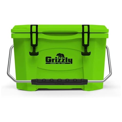 Rotomoldado Nossos refrigeradores são feitos de plástico LLDPE moldado rotacionalmente e são projetados para atingir espessuras de parede uniformes para durabilidade ideal Propriedades térmicas Todos os coolers de lado rígido são injetados sob pressão com até duas polegadas de espuma de poliuretano Ecomate para resfriamento ideal. Este isolamento exclusivo não tem potencial de aquecimento global, nenhum potencial de destruição do ozônio e é feito sem VOCs. Junta da tampa Nossas tampas vedam com uma junta de borracha para manter o ar frio preso, prolongando a longevidade do seu gelo. Certificação Interagency Grizzly Bear Committee IGBC Todos os coolers rígidos Grizzly são certificados IGBC e resistentes a ursos. Cada cooler hardside também vem com dois orifícios de trava para manter seu cooler e seu conteúdo Marca: Não Informado