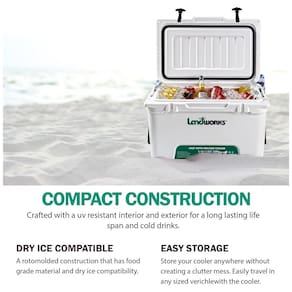 Nosso refrigerador de caixa de gelo Rotomolded 45QT , 45L vai ALÉM dos dias mínimos padrão de retenção de gelo, mas até 3 5 dias ou MAIS se pré resfriado, mantido em baixa temperatura e índice UV. de grau alimentício, compatível com gelo seco, aprox. 48 Capacidade de lata de 350mL sem adição de gelo e resistente o suficiente para suportar o que quer que a natureza jogue em você. Os refrigeradores rotomoldados são a nata da cultura em tecnologia para isolamento de nível . Nosso refrigerador tem paredes isoladas de 3 DE ESPESSURA, revestimento protetor UV redondo, junta de estilo freezer D Seal de grau retendo todo o frio por dentro, plugue de drenagem embutido sem vazamento, ripas de amarração moldadas e com 2 absorventes de borracha de impacto Punhos ergonômicos em cada lado. CARACTERÍSTICAS INGENUITIVAS DE DESIGN Alças de corda de nylon superduty removíveis, abridores de garrafa duplos embutidos em aço inoxidável, pés antiderrapantes, travas TPE T Clasp de baixo perfil elegantes que são apertadas e niveladas Marca: Não Informado