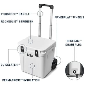 Fácil o suficiente para caminhadas longas, alto o suficiente para vinho gelado, grande o suficiente para uma porta traseira o dia todo. PUNHO DE PERISCÓPIO Retrátil para conveniência e construído forte para provisões extra pesadas. RODAS NEVERFLAT A construção sólida e inteiriça do pneu é resistente a impactos e furos. ALÇAS LIPGRIP fique fora do caminho e facilite o transporte de suas capturas. PÉS ANTI SLIP BEARFOOT Evite escorregar no barco ou no banco traseiro Marca: Não Informado