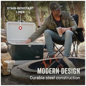 O refrigerador de alta capacidade e resistente apresenta um design retrô encantador. A capacidade de 54 litros acomoda até 85 latas A tampa Have a Seat suporta até 110 kg. Mantém o isolamento de gelo oferece retenção de gelo de 4 dias. Construído para oferecer anos de desempenho com hardware de aço inoxidável resistente à ferrugem. Alças de aço de aderência confortável permitem levantamento e transporte fáceis e controlados Marca: Não Informado