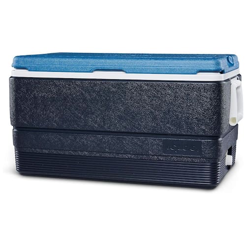 O resfriador a frio Igloo max oferece o máximo em retenção a frio com tampa e corpo isolados com utratherm O isolamento de ultratermatozóides no corpo e na tampa ajuda a manter as coisas frias Puxadores reforçados com loop de amarração para transporte versátil e carregamento Possui 70 quartos ou 114 Latas de 350 mL Forro resistente a manchas e odores Marca: Não Informado