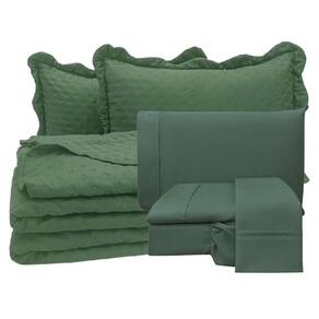 Coordenado cobre leito casal e lençol diplomata 7 peças - verde Coordenado cobre leito casal dupla face e lençol diplomata 7 peças