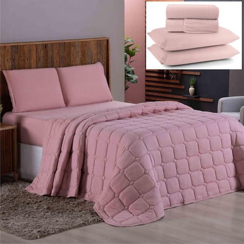 Coordenado Cobre Leito E Lençol King Sereno Em Malha 7 Peças - Rosê - 100% Algodão