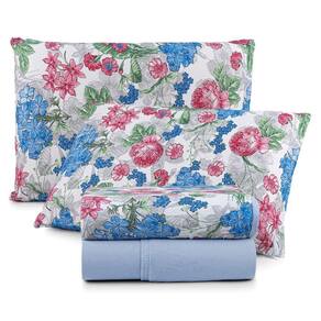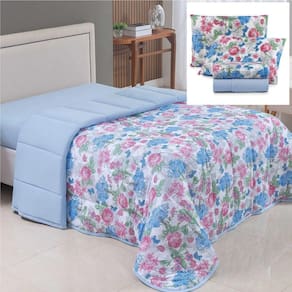 Coordenado Edredom E Lençol King Sonho Bom Em Malha 5 Peças - Azul - 100% Algodão