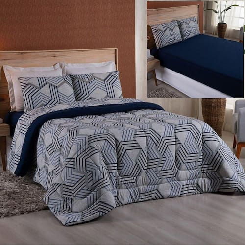 Conforto Superior: O Edredom é acolchoado, ideal para todas as estações do ano. O lençol com elástico ajusta-se perfeitamente ao colchão, proporcionando noites de sono tranquilas e confortáveis.