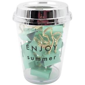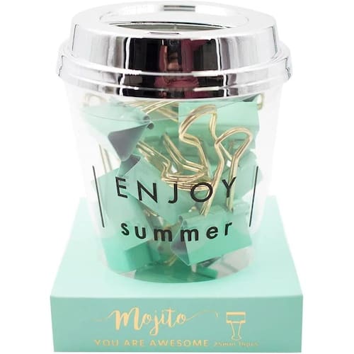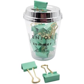 • Cor: preto/dourado. • Tamanho dos binders: 25mm. • Quantidade: 16 unidades. • Tampa com ímã. • Material do copinho: acrílico.