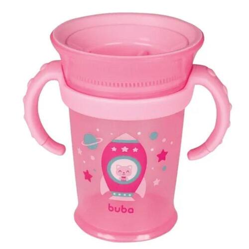 O Copo de Treinamento 360° com Alça da Buba foi desenvolvido para facilitar o aprendizado para o uso do copo de adulto. Ele possui alças que permite a criança segurá-lo com firmeza! Sua tampa possui vedação com silicone que serve como válvula evitando vazamentos, assim a criança poderá tomar o suco, água, leite em qualquer posição de forma suave e tranquila. A cada gole digerido, a válvula siliconada sela automaticamente não desperdiçando o conteúdo e principalmente não vaza no rostinho ou roupinha da criança. Você pode girar o copo 360° sem deixar a bebida cair mesmo estando de cabeça para baixo. Ele é um ótimo utensílio para dar segurança à sua criança nesta fase tão importante que é desenvolver e estimular autonomia!