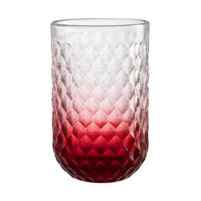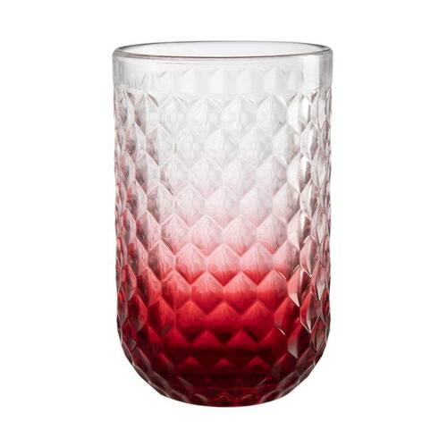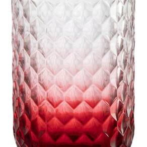 O Copo Alto Natal Duo tem capacidade para 350 ml, detalhes geométricos em alto relevo, o degradê para o vermelho cria um ponto cor que se destaca na composição da mesa.