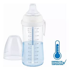 O copo First Choice vem com controle de temperatura A escala azul fica automaticamente branca se o líquido dentro estiver muito quente para o seu bebê
