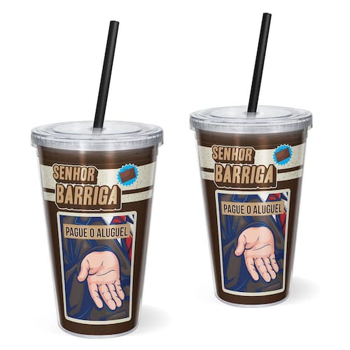 Copo Canudo, com parede dupla, capacidade aproximada de 600ml, feito de acrilico, com tampa de rosca e canudo rigido.