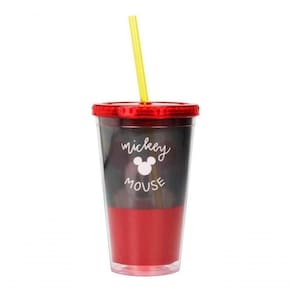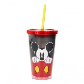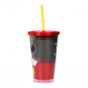 Copo de plástico com canudo estampado nas cores e desenho do Mickey. Capacidade para 450 ml. Reutilizável e lavável. Material: plástico