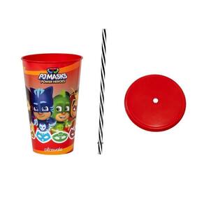 - Copo com Canudo e Tampa Decorado 580ml PJ Masks