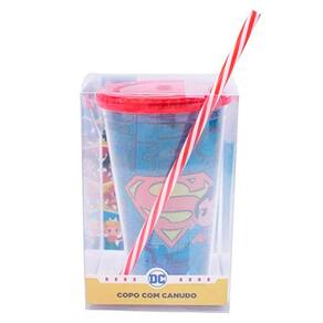 Copo com Canudo Logo Superman DC Comics 450ml - Tasco Inport