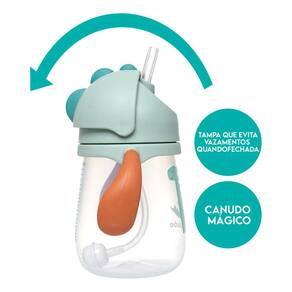 O Copo com Dispositivo da Buba é ideal para o dia a dia dos pequenos. Com um divertido tema de dinossauro, ele possui um sistema inovador que acompanha o líquido, permitindo que a criança beba em qualquer posição sem ingerir ar, prevenindo o acúmulo de gases. O canudo em silicone macio proporciona conforto, e a tampa retrátil higiênica mantém o bico protegido. As alças removíveis facilitam o uso em diferentes fases do bebê.