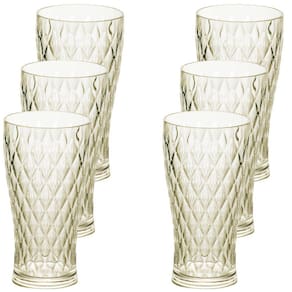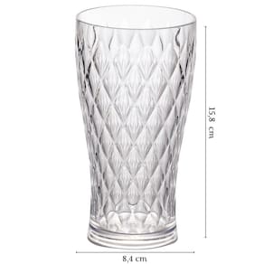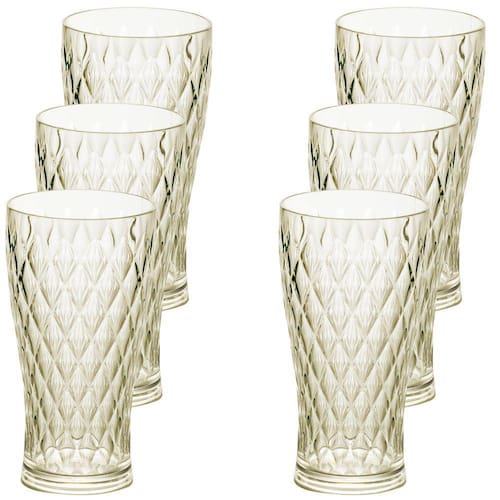 Kits com 6 copos de plástico com capacidade para 500ml. Produto integrante da linha Cristal Glamour, possui superfície facetada, seguindo as principais tendências do segmento de mesa posta e decoração. Produto versátil, possibilita infinitas produções casual ou chique. É produzido em material atóxico e livre de BPA e pode ser levado ao freezer.