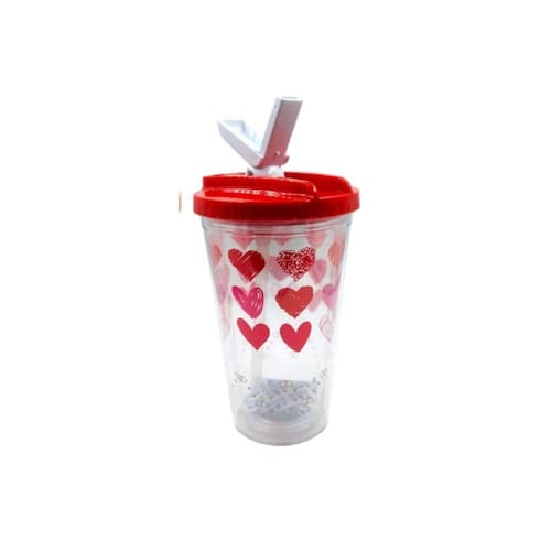 Copo de plástico Infantil Desenho Frutas com Canudo 450ML