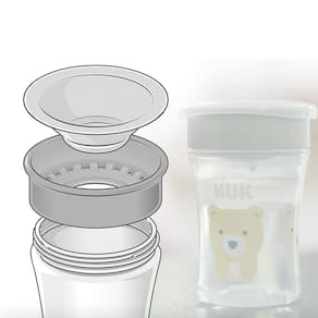 Incentiva o desenvolvimento das habilidades manuais possibilitando à criança o uso de um copo semelhante ao utilizado pelos seus pais e com a segurança de não se sujar ou quebrá-lo.