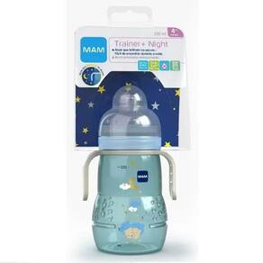 Combinando o design e funcionalidade tradicionais da linha MAM, com o estilo e inovação da alça Night que brilha no escuro, o copo MAM Trainer + Night é ideal para o aprendizado do bebê. Ele possui sistema antivazamento, é fácil de segurar e conta com um Bocal supermacio com superfície de Silicone para uma fácil transição para o copo, além de ser totalemnte livre de Bisfenol-A.