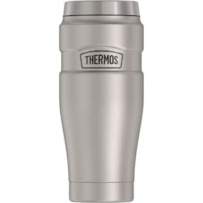 Thermos Stainless King copo de viagem térmico, 470 ml, preto fosco - Capacidade de 470 ml. - Tecnologia de isolamento térmico a vácuo Thermos para retenção máxima de temperatura. - Mantém o conteúdo quente por até 7 horas e gelado por até 18 horas. - Aço inox durável por dentro e por fora. - Tampa com vedação DrinkLock mantém as bebidas seguras quando na posição fechada.