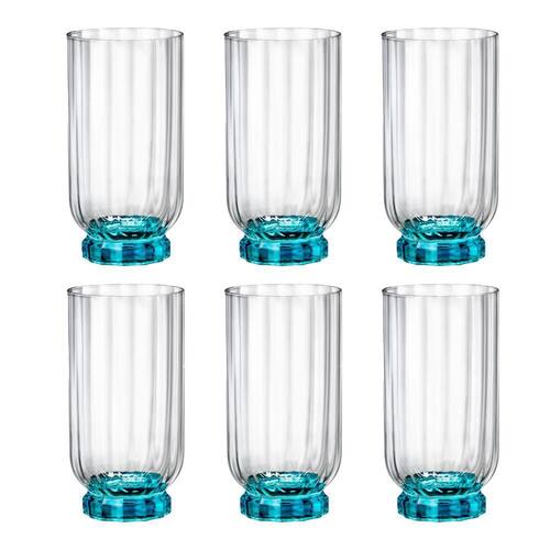 JOGO COM 6 COPOS DE VIDRO 430 ML LINHA FLORIAN BLUE BORMIOLI ROCCO