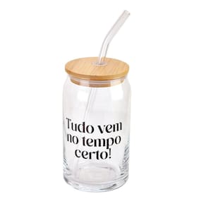 - Capacidade 470ml - Design Atraente: frases para inspirar seus dias. - Material eco: Vidro e tampa de bambu durável - Praticidade: Canudo de vidro incluído. - Versatilidade: Perfeito para sucos, smoothies e outras bebidas refrescantes. Marca: Não Informado