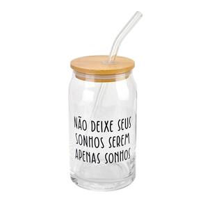 - Capacidade 470ml - Design Atraente: frases para inspirar seus dias. - Material eco: Vidro e tampa de bambu durável - Praticidade: Canudo de vidro incluído. - Versatilidade: Perfeito para sucos, smoothies e outras bebidas refrescantes. Marca: Não Informado