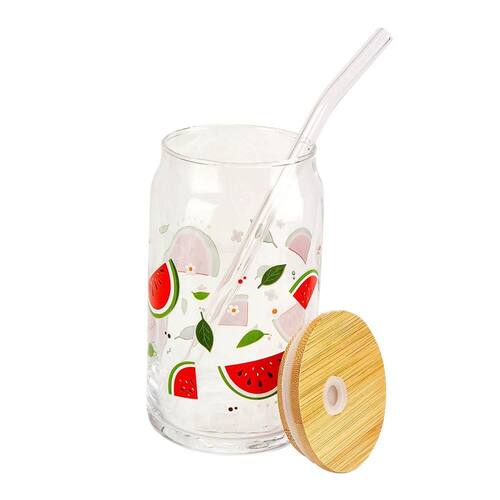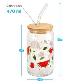 Copo de Vidro com Canudo Tampa de Bambu Frutas Cor: Melancia Copo de Vidro com Canudo e Tampa de Bambu, decorado com desenhos de frutas Ideal para quem adora bebidas refrescantes, esse copo combina estilo e funcionalidade. Com capacidade perfeita para sucos, smoothies ou água, ele é uma escolha eco para o seu dia a dia. A tampa de bambu com vedação em silicone mantém sua bebida protegida, enquanto o canudo de vidro facilita o consumo. Leve um toque de natureza e frescor para suas refeições