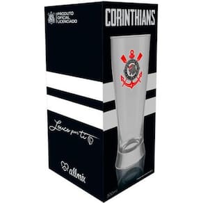 Copo De Vidro Lager Corinthians 300 Ml Copo de vidro Lager Corinthians com capacidade para 300 ml. Observação: As cores dos produtos podem sofrer variações em função das características do monitor e do ambiente durante sua visualização. Matéria prima: Vidro. Medida aproximada da embalagem: Compr. X Larg. X Alt. : 07x07x17 cm.