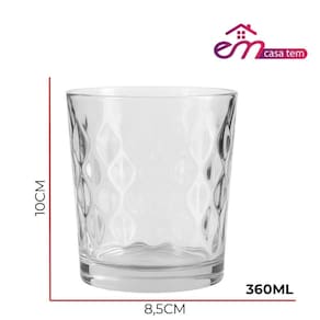 Copo de Vidro Transparente para Whisky Diamond 360ml Em Casa Tem