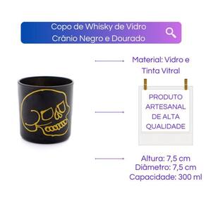 Copo De Whisky De Vidro Crânio Negro E Dourado 300 Ml