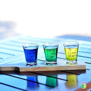 Detalhes Agora você pode se divertir tomando sua cachaça usando nossos Copos Dose de Cachaça, o KIT dose é composto por três copos e uma tábua de madeira. Características: Altura: 3,5 cm Largura: 5,5 cm Comprimento: 29 cm Capacidade: 60 ml Ean: 7899790262506