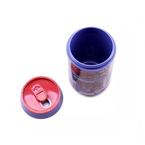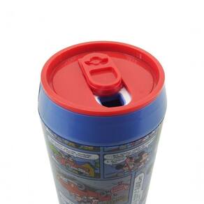 Criativo copo em forma de lata de refrigerante. Quando for beber, basta empurrar a tampinha para o lado, quando não for beber, feche a tampa que não irá derramar a bebida. Assim, você leva para onde quiser e do jeito que quiser sem precisar se preocupar. Copo bastante resistente com tampa. Acompanhe a incrível história do Mickey & Minnie no gibi que estampa este copo.