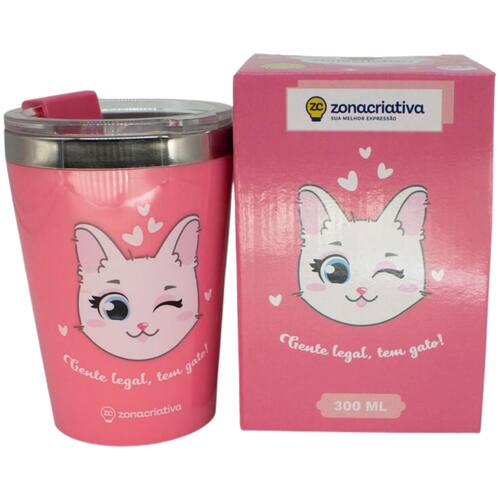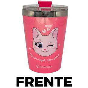 Copo Gente Legal Tem Gato Gata Cat Rosa Térmico Quente Gelado 300ml Com Tampa!