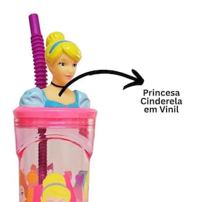 Copo Infantil Cinderela 3D com Canudo 360ml – Princesas Disney