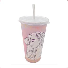 Copo infantil divertido para colorir 500ml com tampa e canudo Copo refri wish produto para colorir