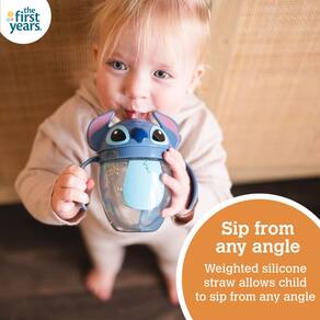 The First Years Copo com canudo ponderado Disney Lilo & Stitch - Copos de canudo infantis à prova de derramamento com tampa flip - Copo de transição - Suprimentos de alimentação infantil - 200 ml - A