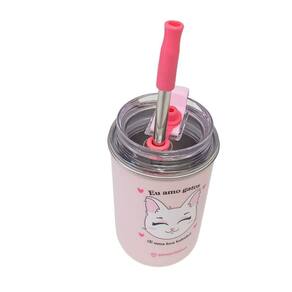 Especificações: Marca: zona criativa Modelo: eu amo gatos Altura: 14cm largura: 7cm comprimento: 7cm Material: aço inoxidável e plástico Capacidade: 300ml Bpa free Cor: rosa