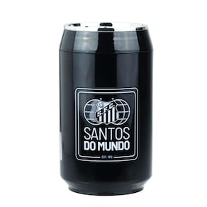 Copo na forma de uma latinha com tampa rosqueável para os santistas assistir e torcer para o Santos com sua bebida gelada por mais tempo, a caneca é feita de plástico com um gel interno para você congelar antes de colocar sua bebida preferida. Uma ótima dica para presentear aquele seu amigo santista.