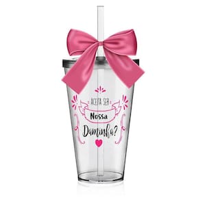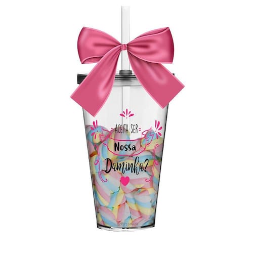 O Copo Convite é uma forma linda e deliciosa de convidar ou agradecer os pequenos por participarem de uma data tão única Com capacidade de 550 ml, você tem a opção de encher os copos com todo tipo de doce e assim encantar a futura Daminha O sim dela será GARANTIDO.