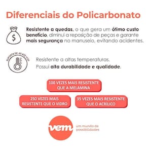 Copo Long Drink 300ml l Em Policarbonato Linha Salut Vem O design do Copo Long Drink 300 ml VEM possui um formato ideal tanto para sucos, quanto coquetéis e devido ao seu tamanho comporta algumas pedras de gelo, para deixar tudo ainda melhor e mais refrescante.O Copo Long Drink 300 ml VEM faz parte da Linha Salut, que abrange uma família de copos e taças desenvolvidos para atender diversas ocasiões e eventos, para que você possa servir com elegância e contar com a alta durabilidade dos nossos produtos.O copo transparente é produzido em Policarbonato, é um produto resistente a quedas, praticamente inquebrável, o que garante a sua segurança no manuseio do produto, evitando acidentes e diminuindo os custos com reposição.- Não trinca, não lasca e não estilhaça- 250x mais resistente que o vidro- 35x mais resistente que o acrílico- 100x mais resistente que a melamina- Produto livre de BPA (Bisfenoal A)- Material 100% reciclávelRECOMENDAÇÕES DE USO:- Nunca utilize produtos abrasivos na lavagem- Lavagem apenas com bucha macia (parte amarela)- Evitar passar utensílios que possam riscar o produto- Pode ser lavado em Lava Louças- Pode ser levado ao Micro-ondas- Pode ser utilizado em Freezer- Pode ser utilizado em banho maria no forno combinado de até 110C (forno industrial à vapor)- Pode ser utilizado em carrinhos térmicos de até 120CCONTÉM:1 Copo Long Drink 300 ml*IMAGENS MERAMENTE ILUSTRATIVAS Matéria Prima - Policarbonato Cor - l Linha de Produto - Salut Resistência as Temperaturas - -60C até +120C Indicações de Uso - Freezer Adequado para alimento Micro-ondas Empilhável 100% Reciclável Máquina de lavar louça Não contamina os alimentos DiâmetroBocal - 5,8cm