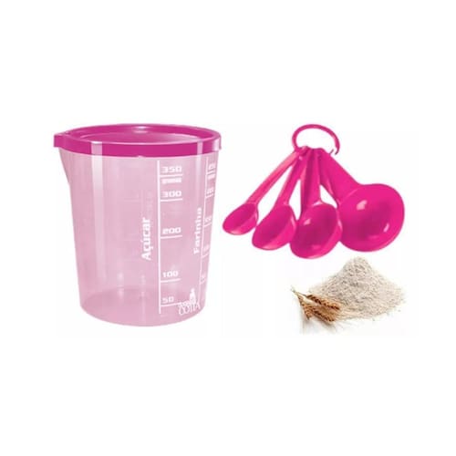 Copo Gradudado Medidor Plástico com Tampa Bico e Colheres Medidoras 400ml O Copo Graduado é ideal para você que precisa fazer receitas com medidas exatas e também para quem busca trazer mais beleza e elegância para sua cozinha. O copo possui medidas arroz, farinha, açúcar, feijão dentre outros alimentos. Perfeito para preparo de bolos e pães.