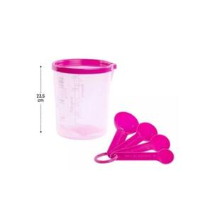 Especificações: Modelo: Copo Graduado Com Tampa e Colher 400ml; Material: Plástico; Capacidade: 400ml; Acabamento: Rosa Translúcido; Marca: Não Informado