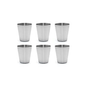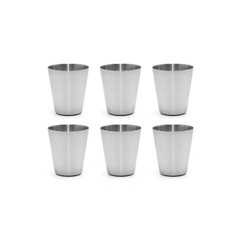 Copo pequeno, perfeito para dosador, molhos, aperitivos, cafe e sobremesas. Os minis copos da CASACHA sao produzidos em aço inoxidavel, altamente duraveis e acabamento impecavel. Ideal para restaurantes, buffet, bares e bistros. Contem: 6 Mini Copos Capacidade: 30ml Medidas: 4 x 3,5 cm Material: Aço inoxidavel Peso: 10g