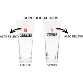 Especificações: - Copo Becks 395ml - Aferição: 300mml - Material: Vidro - Altura: 16,5 cm - Largura: 7 cm - Comprimento: 7 cm - Acompanha: 1 Unidade