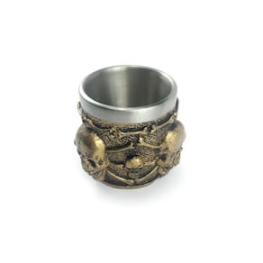 Copo Shot 6 Caveiras, lindo copo com seu interior em aço inox e exterior em resina, confeccionado de modo semi-artesanal, ideal pra quem gosta de tomar um shot com família e amigos, pode ser usado como decoração por conta do fino acabamento e é uma ótima opção para presentear familiares e amigos.