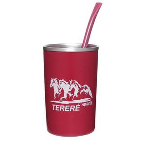 Copo para tereré Rodeo West fabricado em alumínio com revestimento em plástico na parte externa na cor Rosa com estampa. Acompanha bomba de alumínio com bojo modelo pêra.