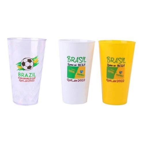 Copo plástico brasil copa mundo hexa grande 550ml