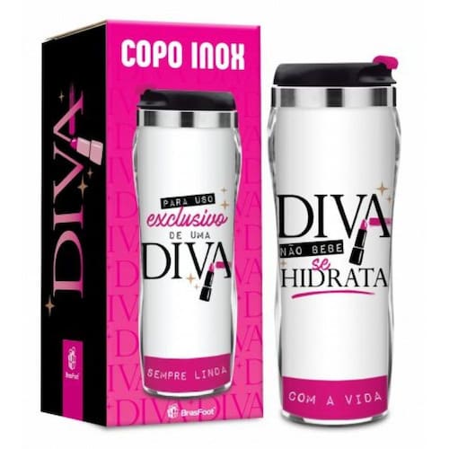 Copo Plástico Inox Temas New - Uso Exclusivo de Uma Diva O Copo Plástico Inox Uso exclusivo diva é ideal pra levar sua bebida com você de uma forma super prática. Ele é confeccionado em aço inox, com vedação em silicone e tampa abre-fecha feito em material resistente e de alta durabilidade, com parede dupla para conservar a temperatura por mais tempo, possui base antiderrapante e BPA Free.