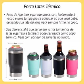 Mantém frio por 4 horas. Mantém quente por 1 hora. Mantém com gelo por mais de 12 horas. Parede dupla para isolamento térmico Isolamento a vácuo Fabricado em aço inoxidável Produto empilhável Encaixa nos porta-copos dos carros Adaptador para latas e longnecks Marca: Não Informado