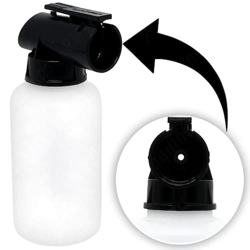 O aplicador de detergente é um acessório interessante para espalhar a espuma com mais eficiência e não deixar manchas, o que contribui para amolecer as sujidades. O item que é é conectado diretamente na ponta da lança e, por isso, evita o contato do produto químico de limpeza com a bomba, prolongando a vida útil do equipamento.